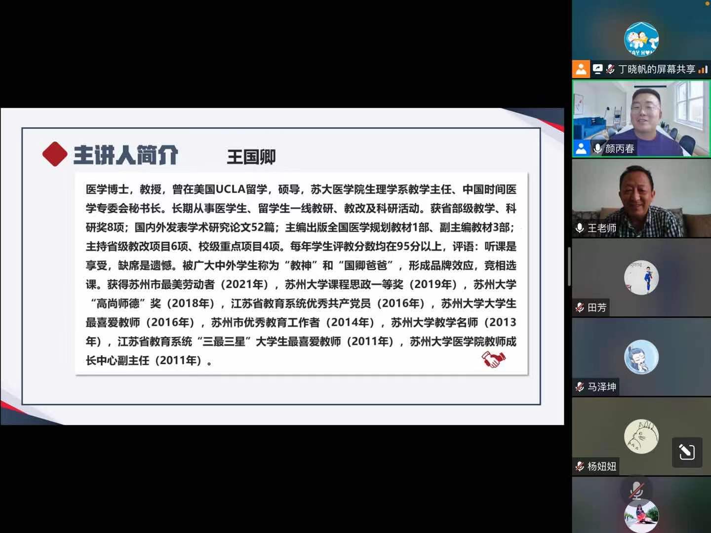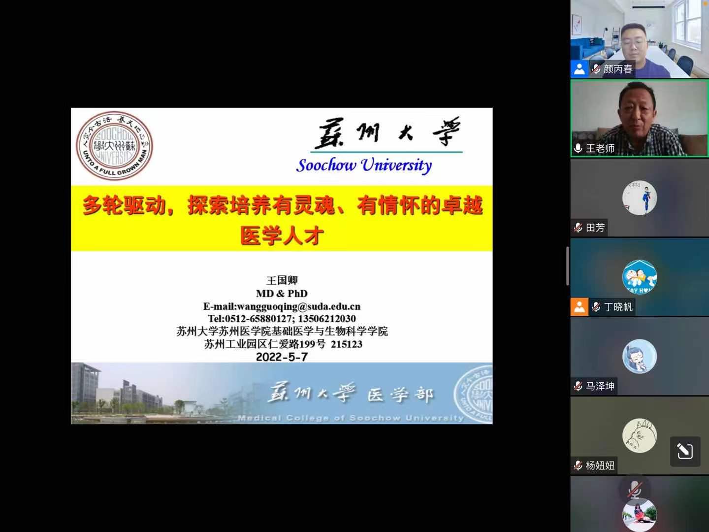5月7日下午,苏州大学苏州医学院生理学系教学主任王国卿教授作客我院校庆系列活动——医学教育论坛(第9期教学思享会)活动。本次活动由我院教学院长颜丙春主持,学院60余人参加了本次线上论坛活动。