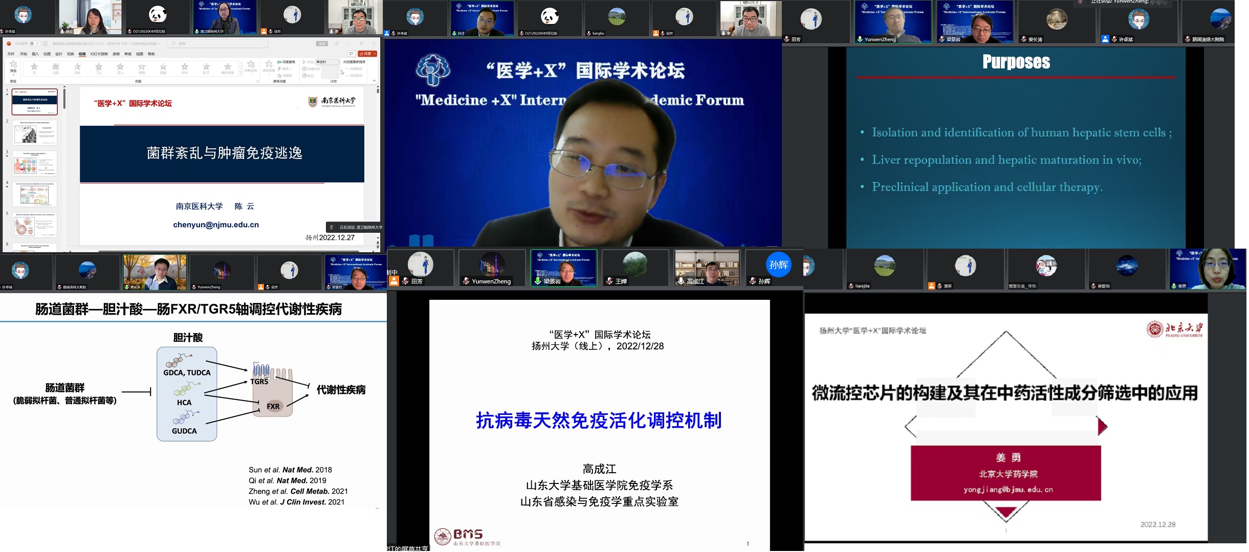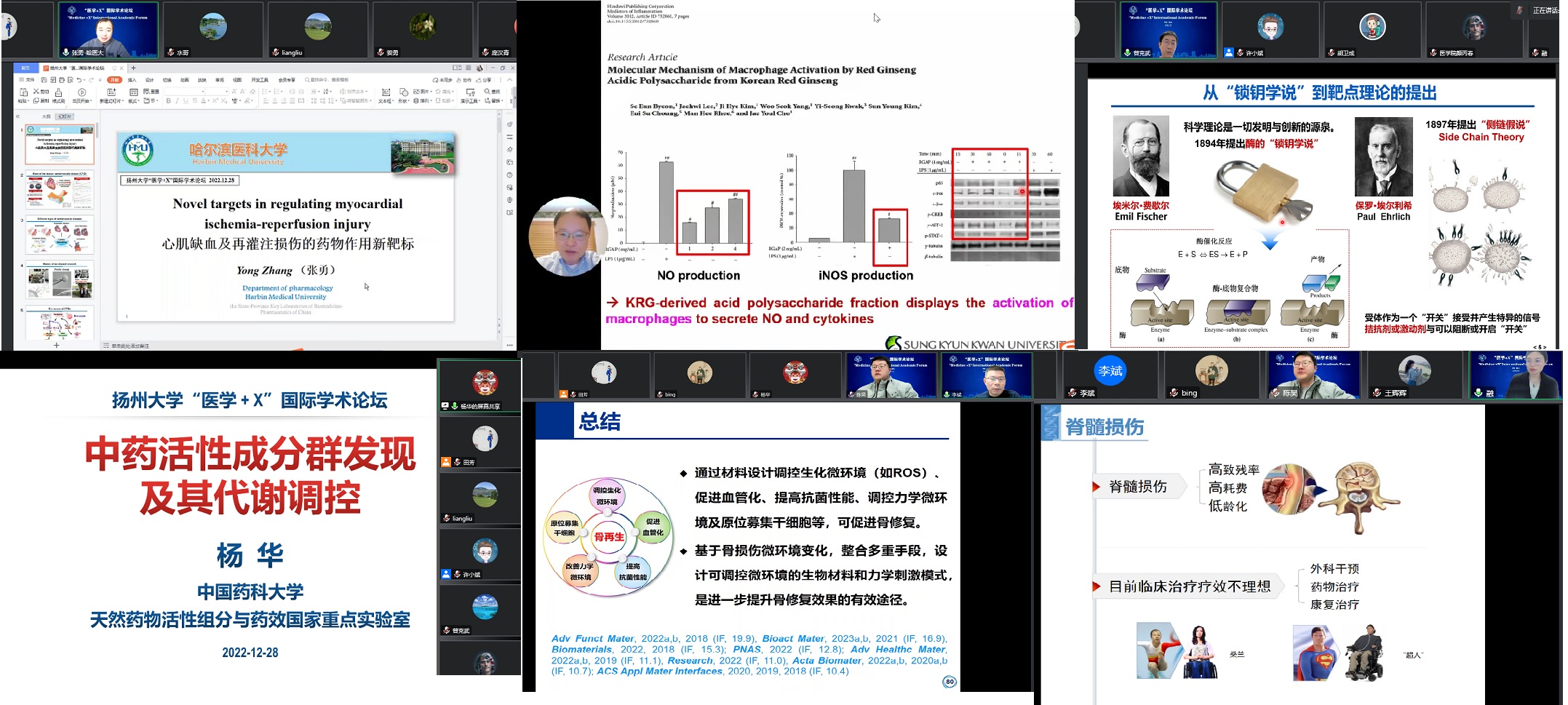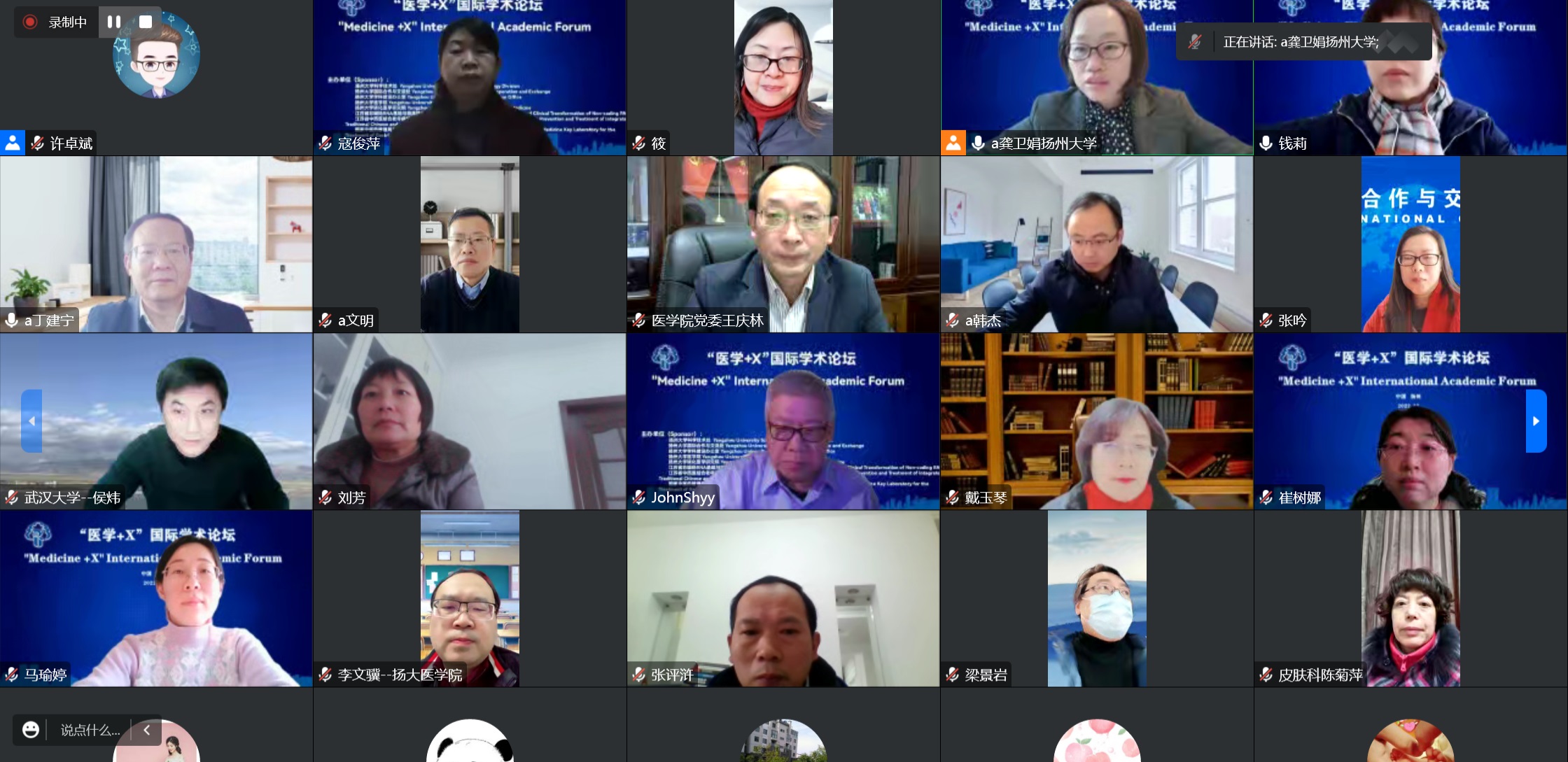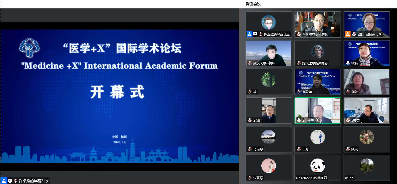 12月27-28日,由扬州大学科学技术处、国际合作和交流处、学科建设办公室、医学院、转化医学研究院、江苏省非编码RNA基础与临床转化重点实验室、江苏省中西医结合老年病防治重点实验室及国家中医药管理局“胃癌毒邪论治”重点研究室主办的“医学+X”国际学术论坛隆重召开。医学院全体教师及研究生共200余人参加了本次会议。扬州大学校长丁建宁出席并致开幕词。龚卫娟副校长主持了开幕式,扬州大学刘巧泉副校长、赵文明副校长、韩杰副校长、科技处刘芳处长、学科建设办公室戴玉琴主任、国际合作和交流处张吟处长出席了开幕式。医学院王庆林书记出席并致闭幕辞。医学部梁景岩主任、医学院钱莉院长、医学院颜丙春副院长出席了论坛。