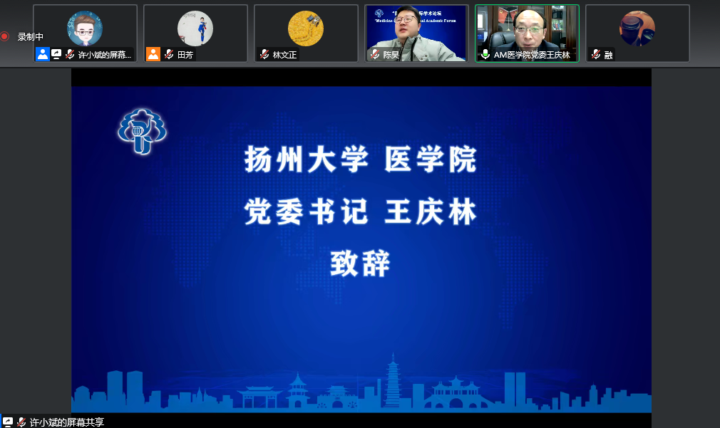 最后,扬州大学医学院王庆林书记致闭幕辞,祝贺 “医学+X”国际学术论坛圆满结束,感谢莅临本次大会的海内外专家学者的积极参与,希望学院以本次论坛为契机,继续与各位专家保持密切的联系,进一步深入思考、畅通科研学术合作交流渠道、开展深入地合作交流、推动创新发展,不断提高科学研究的能力。