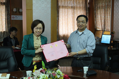 吴建明教授长期从事白细胞领域和自身免疫病的研究,吴教授通过2个小时的学术报告,展现了他在美国期间在免疫球蛋白FC段的发现,以及临床应用,吴教授的研究为医学院的青年教师今后将科研成果向转化医学方面提供了很好的思路和方法。会议结束后,学院聘任吴建明教授为学院讲座教授,龚院长给他颁发了聘任证书。吴建民教授表示,今后将跟医学院多多合作,将好的思路好的方法带到国内来。