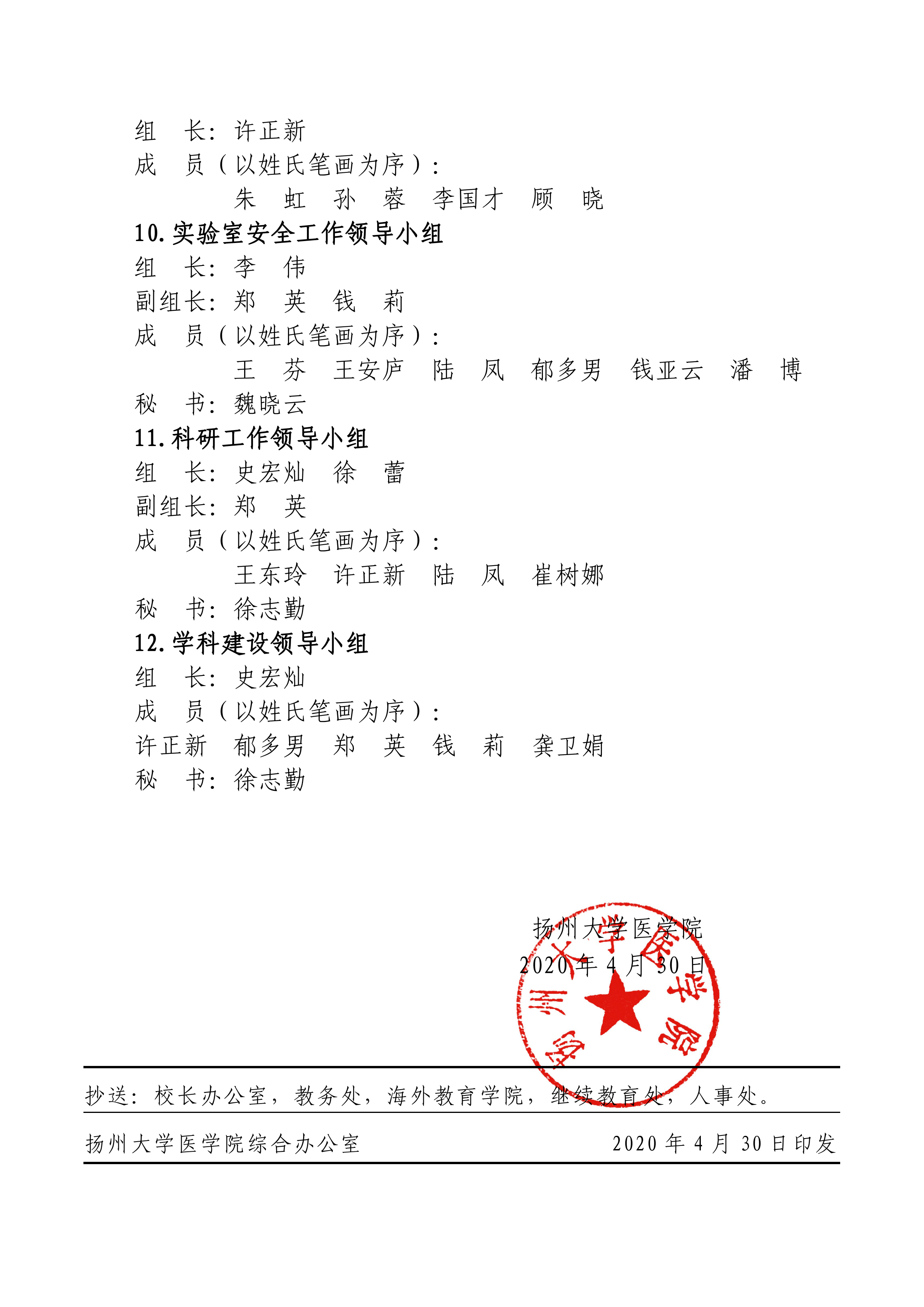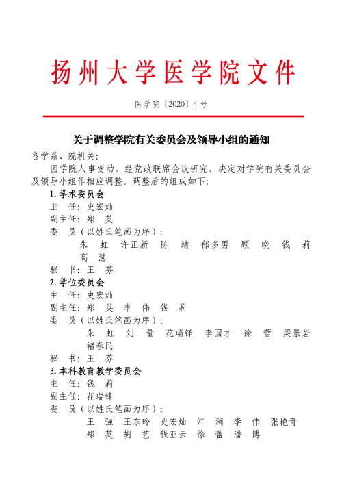 关于调整医学院有关委员会及领导小组的通知(医学院〔2020〕4号)