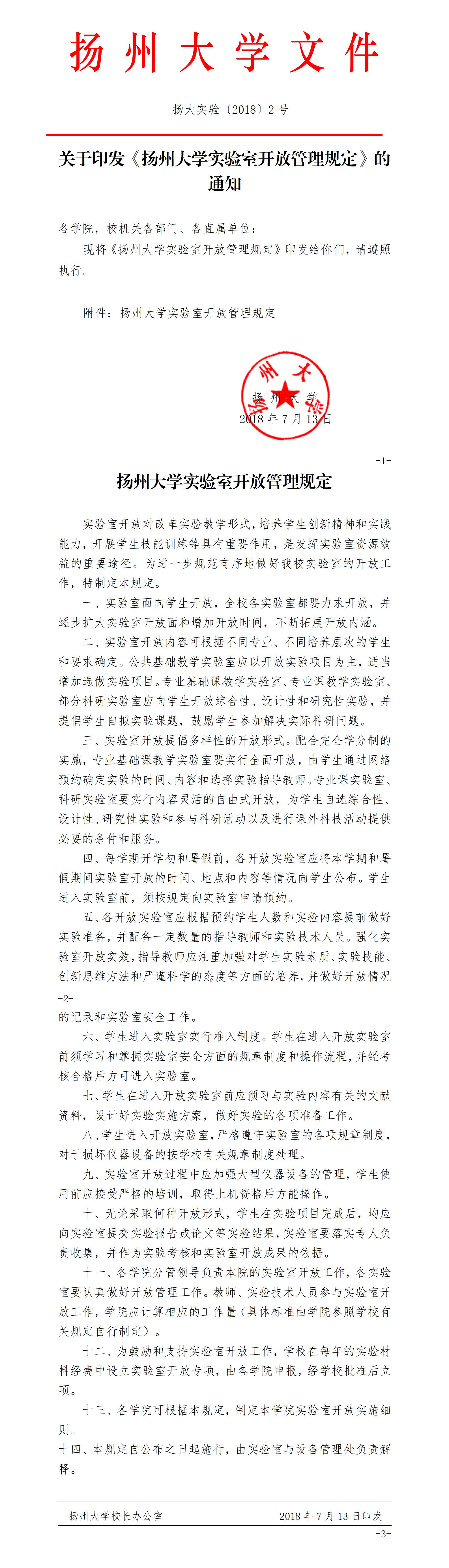 关于印发《扬州大学实验室开放管理规定》的.doc