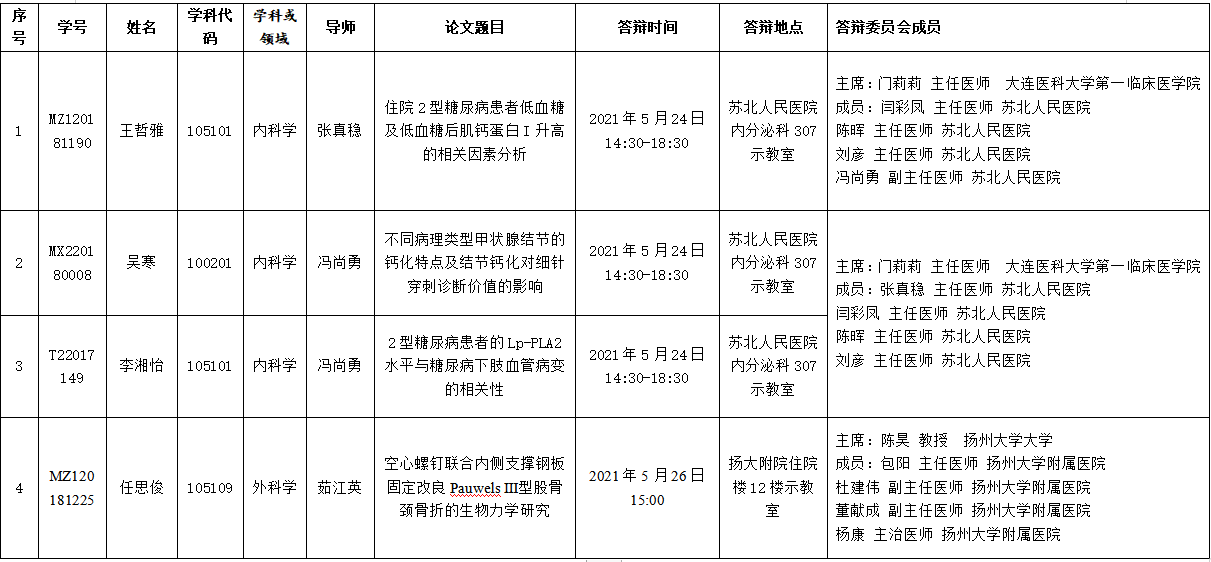 医学院2021年上半年硕士研究生论文答辩信息公告4