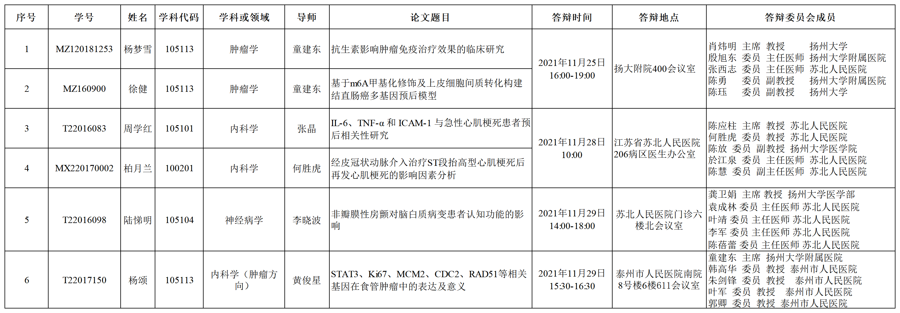 医学院2021年12月硕士研究生论文答辩信息公告10